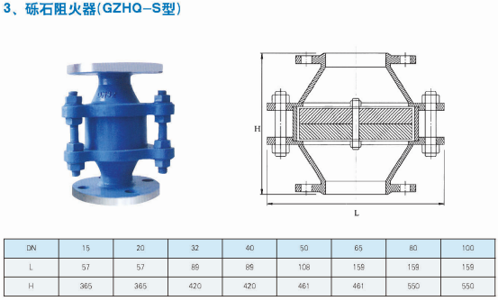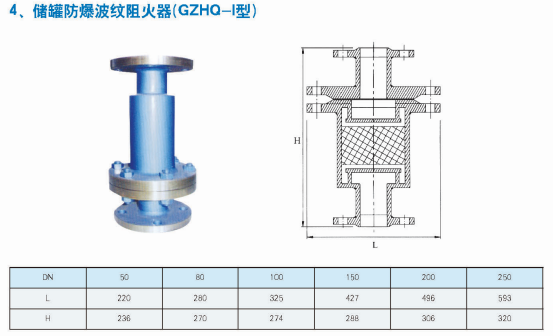 阻火器是用來阻止易燃?xì)怏w、液體的火焰蔓延和防止回火而引起爆炸的安全裝置。通常使用在輸送或排入易燃易爆氣體的儲罐或者管線上。如火炬、加熱燃燒系統(tǒng)、石油氣體回收系統(tǒng)或其他易燃?xì)怏w系統(tǒng)。